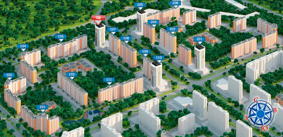 Микрорайон «Центр-2» находится в центральной части города Железнодорожного в районе пересечения Автозаводской и Пионерской улиц. Центральная часть жилого комплекса – широкий бульвар, проспект Героев, который соединён с центральной площадью района «Центр-2». Предполагается разбивка площади на две части: с северной стороны планируется строительство храма и административных зданий, с южной – торгово-развлекательного центра.